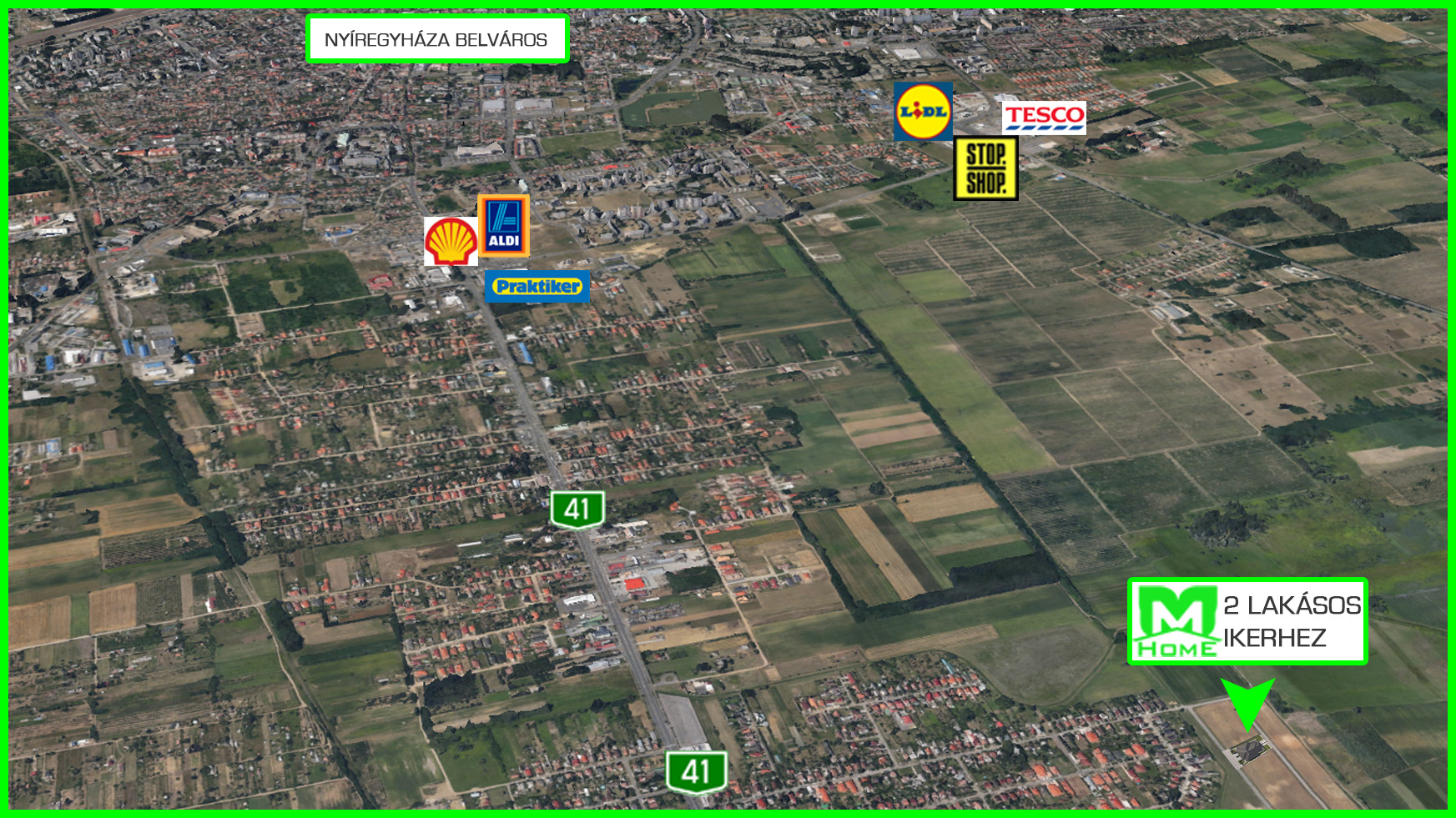 A 2 lakásos ikerház Nyíregyháza csendes övezetében, Oroson található.